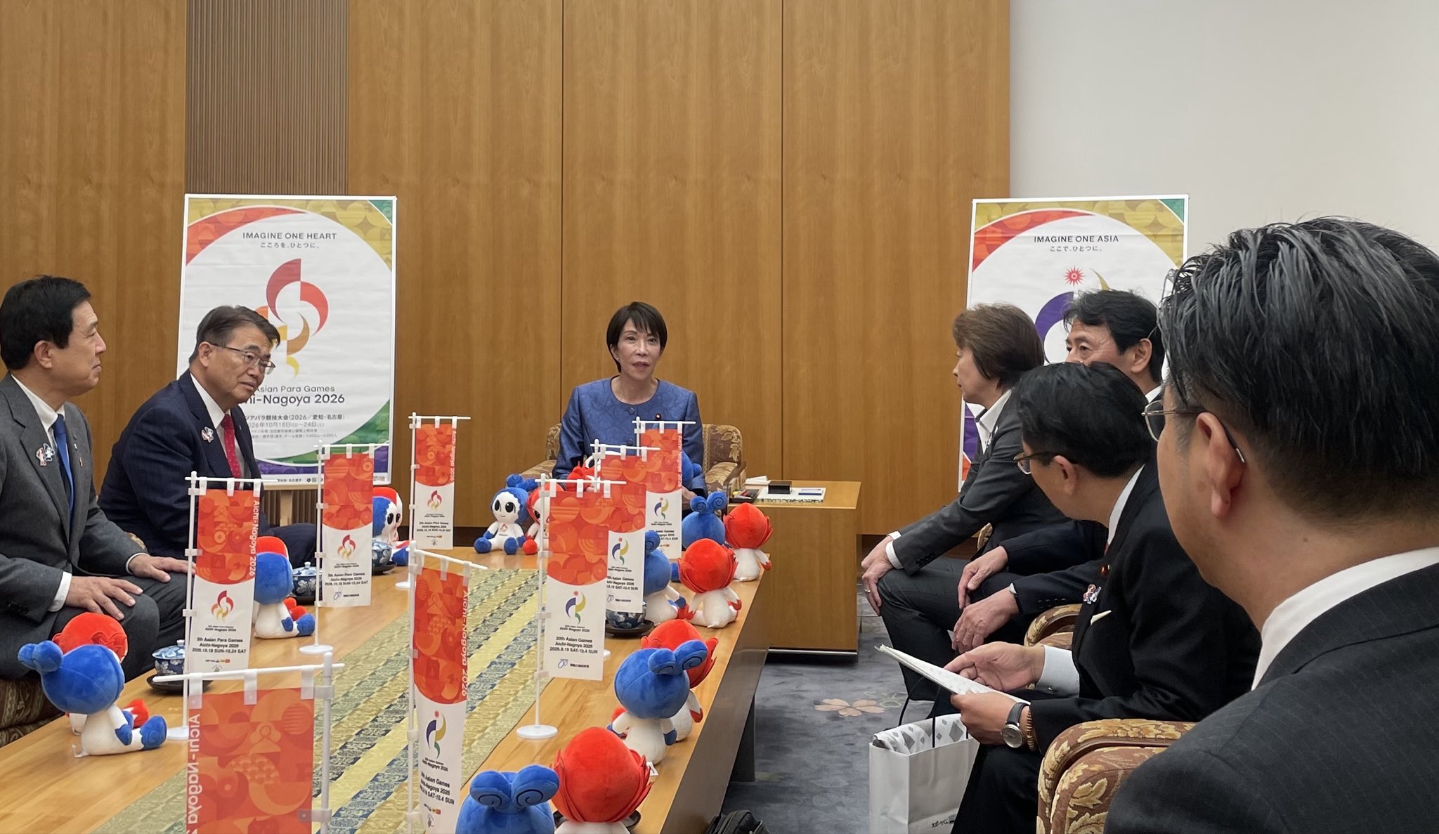 大村愛知県知事、広沢名古屋市長はじめアジア大会・アジアパラ大会の地元関係者、橋本聖子会長はじめ議連の各党代表と、官邸・高市総理に大会開催への協力の御礼とさらなるご支援をお願い。総理より「しっかり応援させていただく」と力強く。